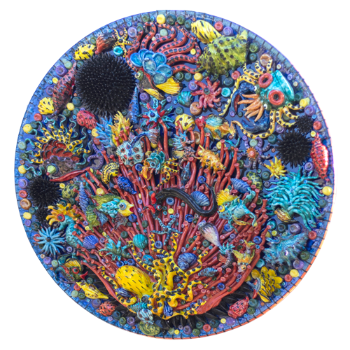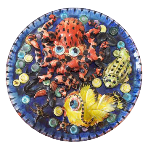 Piatto da 122cm con elementi fauna marina esposto durante l’evento Forbes Italia (Rinascimento Mediterraneo) Acciaroli SA